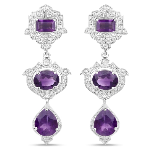 Boucles d'oreilles en argent sterling .925 K, améthyste véritable et topaze blanche de 6,97 carat