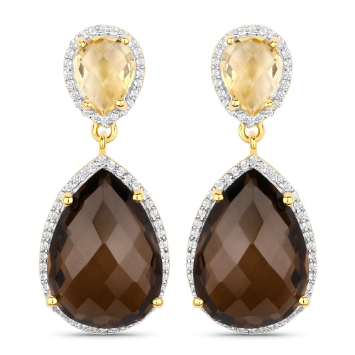 Boucles d'oreilles en argent sterling .925 K, quartz fumé véritable, citrine et topaze blanche de 21,12 carat