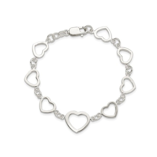 Bracelet ?á liaison cardiaque poli en argent sterling (7,50 pouces)