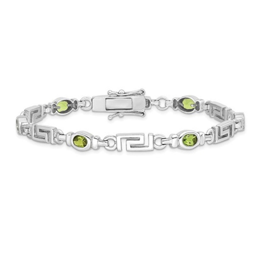 De superbes péridots verts ovales et verts ovales (0,33 ct) sont sertis dans de l’argent sterling plaqué rhodium élégant sur ce bracelet à motif de grecques avec pierre de naissance d’août. Ce bracelet mesure 7.50 po de longueur.
