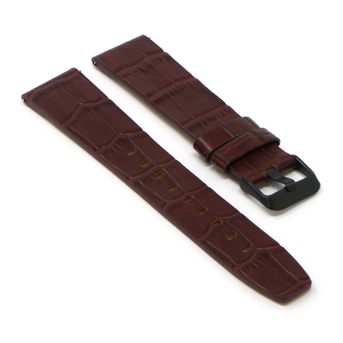 Bracelet cuir croco croco StrapsCo pour Versa/Versa 2 Fitbit-moyen court-Brun (boucle noire)