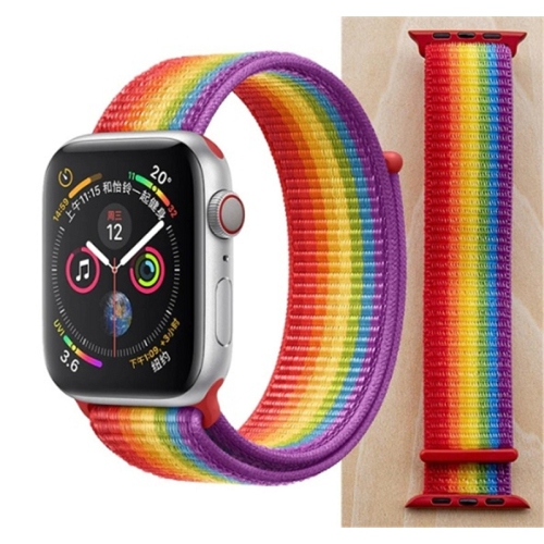 Bracelet de rechange à rabat sport en nylon tissé pour Apple Watch iWatch Series 1 à 10 SE Ultra, 38 mm 42 mm 41 mm 40 mm (série 10), arc-en-ciel