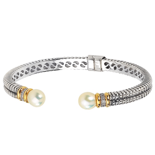 Donnez instantanément du style à votre tenue habituelle avec cet élégant bracelet en argent sterling. Doté de deux magnifiques perles d’eau douce et de détails dorés surprenants, ce bijou est un bijou que vous pouvez apporter partout.