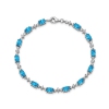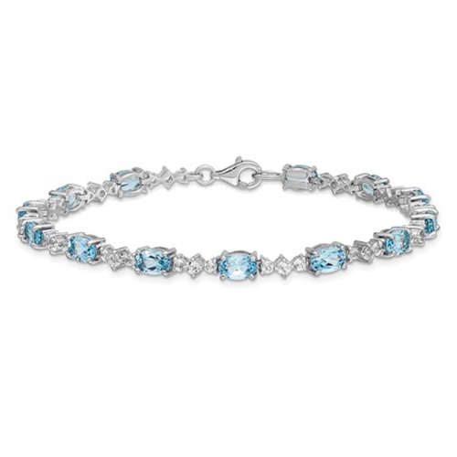 Ce bracelet est orné de pierres ovales de topaze bleue éclatante, la pierre de naissance de décembre, serties dans de l'argent sterling plaqué rhodium (6,65 carats, ct). Ce magnifique bracelet avec pierres précieuses est orné d'une topaze blanche étincelante pour compléter le tout. Créant un style unique et coloré, ce bracelet avec pierre de naissance est idéal pour faire plaisir à une personne que vous aimez pendant les Fêtes.