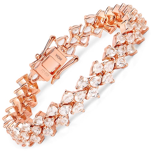 Bracelet en argent sterling plaqué or rose 14 ct 10.79 avec morganite véritable 0,925 ct
