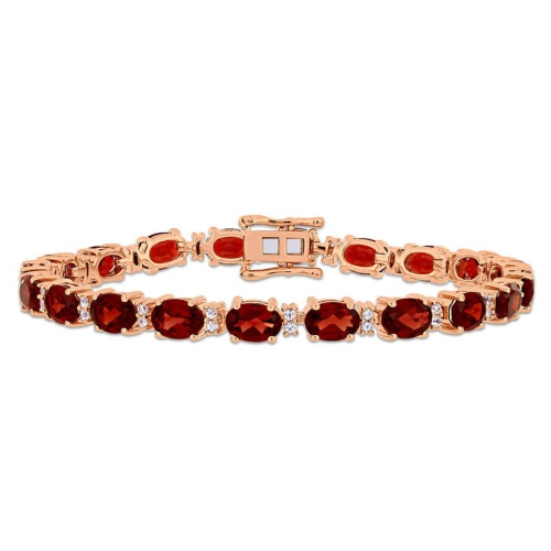 Ce bracelet tennis classique est fait d'argent sterling plaqué rose éclatant et comporte 20 grenats ovales à sertissure à griffes de 19,00 ct (ct) ainsi que 40 saphirs blancs ronds à sertissure à griffe de 0,60 ct (ct) parfaits pour toutes les occasions. Profitez de la pierre de naissance de janvier à une valeur remarquable.