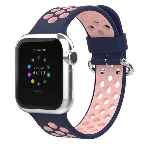 Bracelet en caoutchouc perforé de StrapsCo pour Apple Watch - moyen-long - 44 mm - Bleu minuit et rose