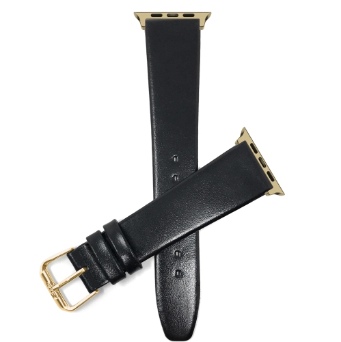 Bracelet en cuir de rechange très long (XL) de Bandini pour Apple Watch Band 42 mm (Series 11/10)/41 mm/40 mm/38 mm, Series 11 10 9 8 7 6 5 & SE - Noir/Doré