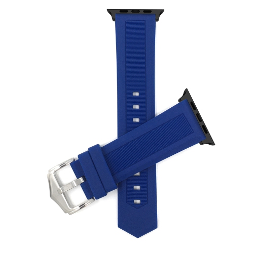 Remplacement de bracelet de montre en silicone/caoutchouc bleu Bandini pour Apple Watch 46 mm/49 mm/45 mm/44 mm/42 mm (série 3), Ultra 1, Ultra 2, Series 11, Series 10, série 9, série 8, série 7, SE, série 6, Série 5, Série 4, Série 3, Série 2, Série 1 pour Homme et Femme (unisexe) - Étanche - Adaptateur de connecteur noir