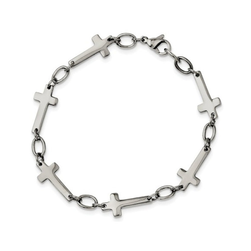 Moderne et élégant, ce bracelet pour hommes de 8 po est en acier inoxydable durable avec des croix latérales.