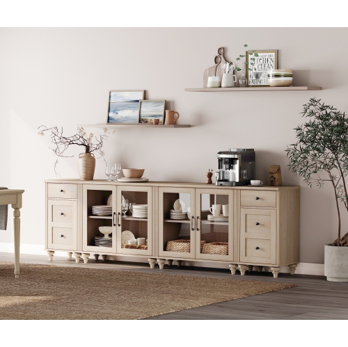 Buffet multifonction 4-en-1 : Le grand buffet 4-en-1 peut être utilisé séparément comme deux armoires en verre et deux tables de bout. En plus de l'armoire de buffet de cuisine, il peut être utilisé comme centre de divertissement, table console, etc. Dimensions de l'armoire en verre : 33,9" X 15,7" X 30,9" (L X L X H). Dimensions de la table d'appoint : 16,5" X 15,7" X 30,9" (L X L X H). Ils sont envoyés séparément en 3 paquets, donc vous pouvez les recevoir à différents moments.