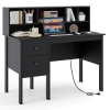 Bureau d'ordinateur avec tiroirs, prises d'alimentation et étagère à 5 compartiments pour le rangement de bureau