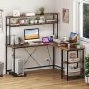 Bureau de jeu en L de Costway avec bande LED et prises d'alimentation Huche support pour moniteur/unité centrale Brun/Noir/Gris