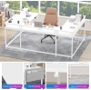Bureau de jeu en U avec prises d'alimentation, lampes LED, support pour moniteur et tablettes de rangement, blanc