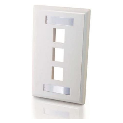 C2G 03412 3-Port Keystone Single Gang Wall Plate, White