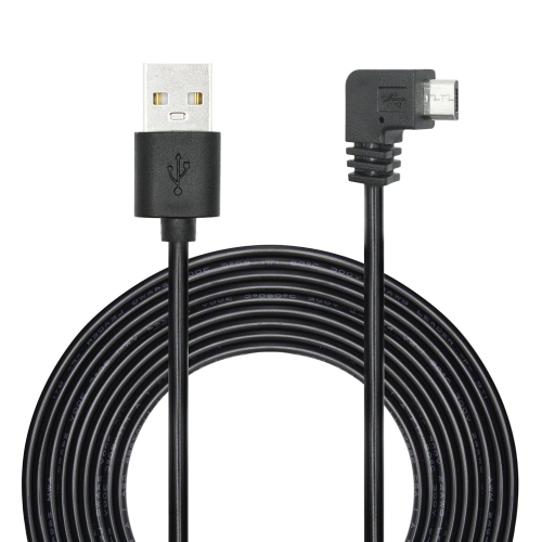 Câble d'alimentation micro USB À 11ft 90 degrés, câble de chargement pour caméra de tableau de bord à angle gauche micro USB, pour caméra de tableau de bord d'auto, téléphones et autres