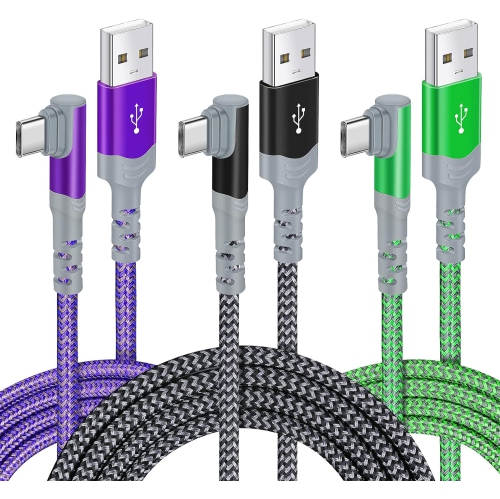 Câble de chargement USB de type C 3Pack 10FT/3 M 90 degrés USB A vers USB C Câble de chargement rapide compatible avec Samsung Galaxy S20 S10 S9 S8 plus Note10 9 8 LG G8 G6 V40 V30
