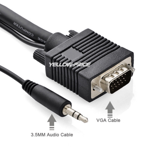 Câble VGA haute performance connectant un ordinateur VGA (Video Graphic Array) à un moniteur ou à un projecteur doté d’un port VGA à 15 broches (aussi appelé RVB, DB-15, DE-15, HD-15, HDB-15 ou D-Sub 15) pour le montage vidéo, les jeux, Ou le projection vidéo prend en charge la vidéo et l’audio avec un seul câble, prend en charge les prises audio stéréo de 3,5 mm...