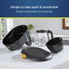La conception simple de cette cafetière d'Oster permet de retirer facilement les pièces exposées aux grains moulus et à l'eau de la base, de les démonter et de les mettre au lave-vaisselle