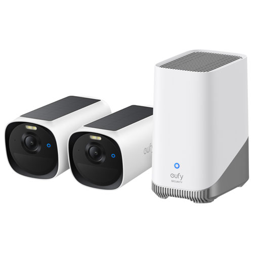 Restez connecté et protégé grâce à l'ensemble avec caméras de surveillance eufyCam E40 d'eufy. Il comprend deux caméras sans fil et un système HomeBase S380 pour vous faire profiter d'une solution de surveillance fiable à la maison. Les caméras offrent une résolution 2K cristalline avec vision nocturne MaxColor. Avec sa mémoire interne de 16 Go, le concentrateur stocke les enregistrements vidéo localement et en toute sécurité, sans frais mensuels.