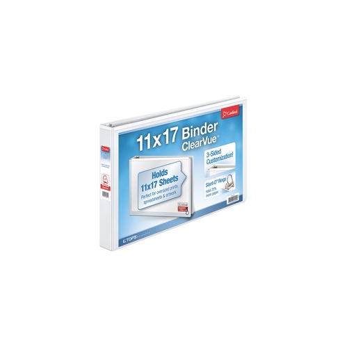 Cartables à anneaux en D ClearVue Tabloid de Cardinal - capacité de reliure 1-1/2 po - Tabloïde - feuille de 11 x 17 po - capacité de 375 feuilles - 1 colonne vertébrale de 45-64 po de largeur - 3 attaches en D - vinyle - Blanc - 1.13 kg - recyclé - 1 chacune