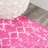 En tons fuchsia et ivoire, ce treillis marocain est inspiré par des designs rétro intemporels et fabriqué avec le polypropylène le plus doux disponible. Originaire des tribus berbères de l'Afrique du Nord, ce magnifique motif linéaire est fait moderne dans une puissance de fil rose profond tissé pour la durabilité.