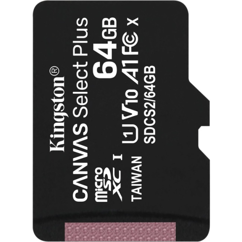 MicroSDXC Canvas Select Plus SDCS2 64 Go classe 10/UHS-I (U1) de Kingston - Paquet de 1 - Lecture 100 Mo/s - Garantie à vie * Les images du produit sont des échantillons et peuvent ne pas correspondre exactement au produit.