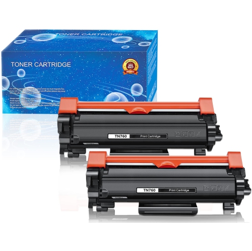 Cartouche d'encre en poudre de rechange compatible avec l'imprimante Brother TN760 TN 760 TN730 TN 730 pour HL-L2350DW HL-L2395DW HL-L2390DW HL-L2370DW MFC-L2750DW MFC-L2710DW DCP-L2550DW (Noir, 2 P