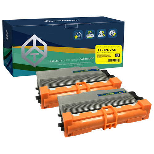 Cartouche d'encre en poudre noire de TToner pour Brother (TT-TN750) - Paquet de 2