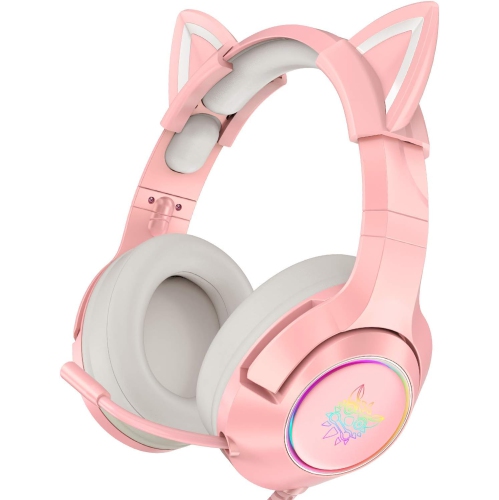 Casque de jeu rose PHNIXGAM pour PS4, PS5, casque d'écoute avec fil amovible
