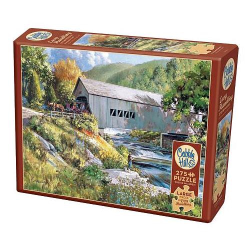 La calèche de cheval émergeant du pont couvert attire l'attention de l'homme qui pêche sur les roches par la petite cascade qui descend sur les marches de la roche. Les casse-têtes de 275 pièces faciles à manipuler de Cobble Hill ont de très grosses pièces coupées au hasard pour vous permettre de prendre les pièces plus facilement, et l’affiche de référence vous aidera à vous y rendre tout au long de l’aventure.