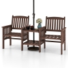 Causeuse d'extérieur en bois de sapin avec table d'appoint à 2 niveaux et trou pour parasol de 1,96 po - Café