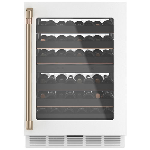 Refroidissez facilement toutes vos boissons préférées dans le cellier encastrable à deux zones de température Café pour 46 bouteilles. Ce cellier pratique met en valeur votre collection, que vous ayez jusqu'à 46 bouteilles de taille standard ou jusqu'à huit magnums. Deux zones de température vous permettent de maintenir deux températures distinctes dans ce cellier, afin que vous puissiez refroidir les vins blancs et rouges en même temps.
