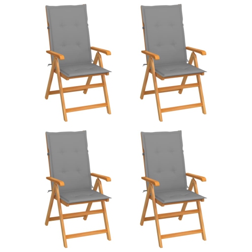 Chaises de patio VidaXL 4 pièces avec coussins gris en teck massif