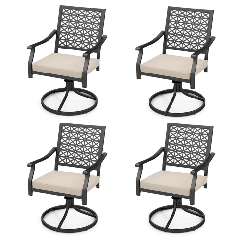 Le mécanisme pivotant à 360 degrés est la marque distinctive de la chaise de patio en offrant une mobilité et une commodité sans effort. Fabriquée avec un tube en métal haute résistance, cette chaise de salle à manger d'extérieur est durable, non déformable et robuste. De plus, le revêtement pulvérisé et le revêtement E du cadre améliorent sa durabilité. De plus, l'élégant dossier à motif de fleurs et les accoudoirs incurvés ajoutent une touche de raffinement à votre espace extérieur.
