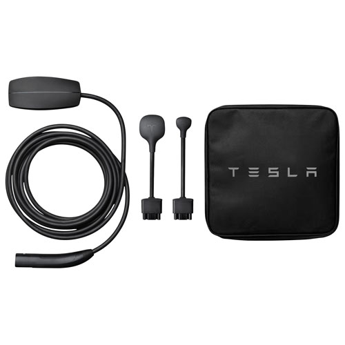 Rechargez votre véhicule électrique n'importe où avec le chargeur pour véhicule électrique portatif à connecteur de niveau 1 de Tesla. Au moyen d'une prise standard et de l'adaptateur NEMA 5-15, vous pouvez ajouter jusqu'à 3 miles d'autonomie par heure. Pour une recharge encore plus rapide, utilisez l'adaptateur NEMA 14-50 avec prise de 240 V pour gagner jusqu'à 30 miles d'autonomie par heure (installation requise). Il est compatible avec tous les véhicules Tesla, à l'aide des adaptateurs inclus.
