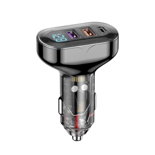 Chargeur de voiture transparent à affichage numérique; Chargeur de voiture à trois ports 72 W adapté au chargeur de voiture USB multifonction pour l'auto XY16 d'Apple [A+A+C]