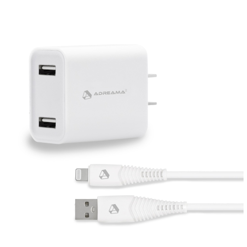 Gardez vos appareils chargés à la maison ou sur la route avec le chargeur d’Adreama. Rechargez 2 appareils simultanément et profitez d’un taux de chargement jusqu’à 30 % plus rapide qu’un chargeur standard. Capable de recharger une grande variété d’appareils avec un port Lightning. Vous pouvez recharger votre appareil rapidement et en toute sécurité, ainsi que synchroniser vos photos, votre musique et vos données avec votre appareil grâce à un câble de 5 pi. Le câble Lightning inclus vous permet de connecter votre appareil à votre ordinateur lorsqu’il n’y a pas de prise de courant.