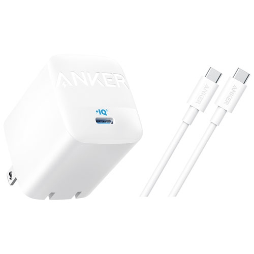 Chargeur mural USB-C à chargement rapide 67 W d'Anker avec câble USB-C - Blanc - Boîte ouverte