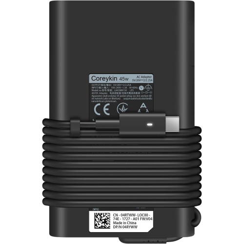 PUISSANCE NOMINALE : 45 W, entrée 100 V-240 V 50-60 Hz, sortie 5 V/20 V-2 A/2,25 A. Chargeur USB-C original de Dell Adaptateur c.a. de portable Remplacement par C. SÉCURITÉ DU PRODUIT - Le principal laboratoire d'essai de produits de consommation, indique que ce produit de C répond à ses normes de sécurité et de conception électrique aux États-Unis et au Canada. N'achetez pas de chargeurs potentiellement inférieurs ou dangereux qui pourraient endommager votre portable ou pire. MODÈLE COMPATIBLE - Dell XPS 13 9350 9360 9365 9370 9380, Latitude 72