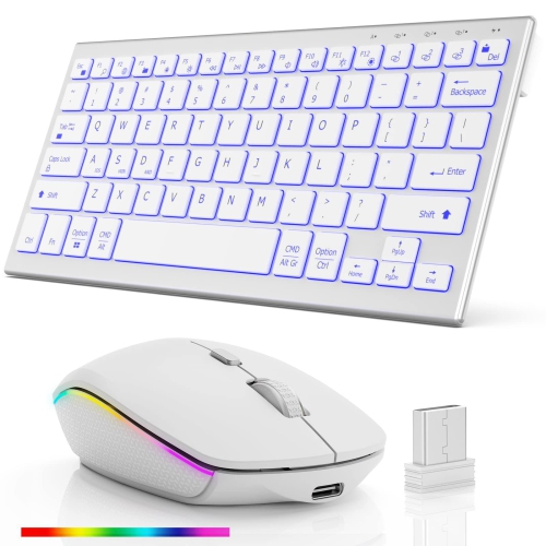 Clavier et souris sans fil rétroéclairés ultraminces Bluetooth 2,4 G rechargeable Ensemble de bureau ergonomique blanc