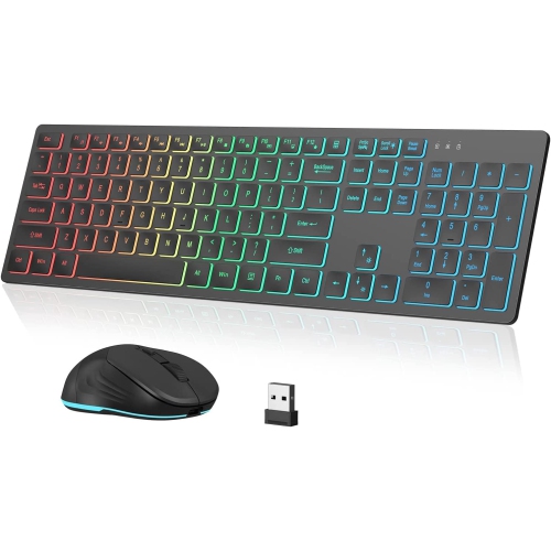 Clavier et souris sans fil, souris avec résolution de 4 ppp, souris-clavier 2,4G avec un nanorécepteur USB pour Windows/Mac OS/portable/PC, Windows OS -- Arc-en-ciel fixe