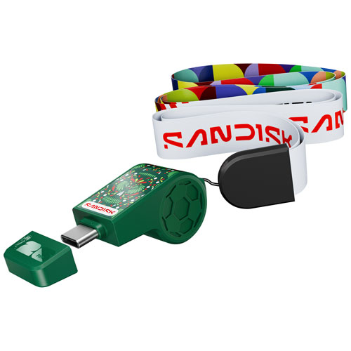 Revivez et célébrez des moments inoubliables au soccer avec la clé USB Coupe du monde de la FIFA 2026 de SanDisk. Dotée d'une capacité de 128 Go, elle offre amplement d'espace pour vos fichiers multimédias, tandis que la vitesse ultrarapide jusqu'à 300 Mo/s vous permet de transférer du contenu en quelques secondes. La forme de sifflet unique et l'autocollant en édition limitée inclus rendent cette clé USB à la fois utile et mémorable.