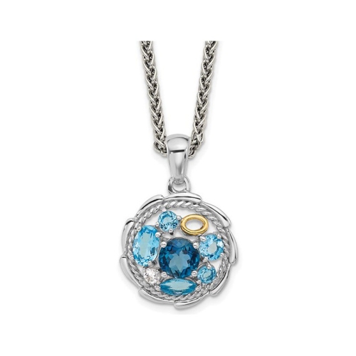 Une simple topaze bleue londonienne ronde solitaire de 1,05 ct repose sur une base en argent sterling, entourée de 5 topazes bleues suisses. Ce pendentif à topaze bleue avec pierre de naissance du mois de décembre comprend une chaîne en or 18 po.
