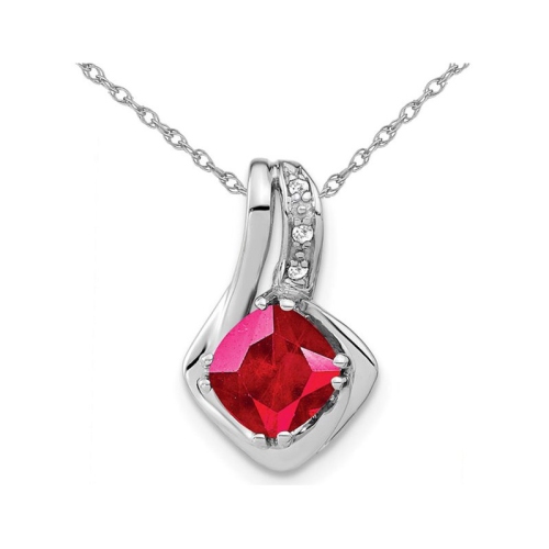 Un riche coussin naturel de coussin naturel rubis Ruby Gemstone 1.10 carats (CTW) se trouve élégamment dans l'étreinte chaude de l'or blanc poli croustillant de 14 karat. Ce pendentif de coeur rubis est d'environ 2/3 pouces de longueur et 1/3 pouce de largeur. Ce pendentif de pierre de naissance de juillet comprend également une chaîne d'or blanc de 18 pouces.