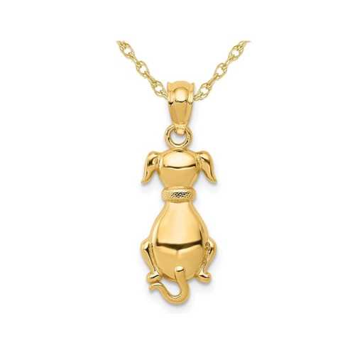 Collier à pendentif en or jaune 14 K avec chaîne et breloque de chien assis poli