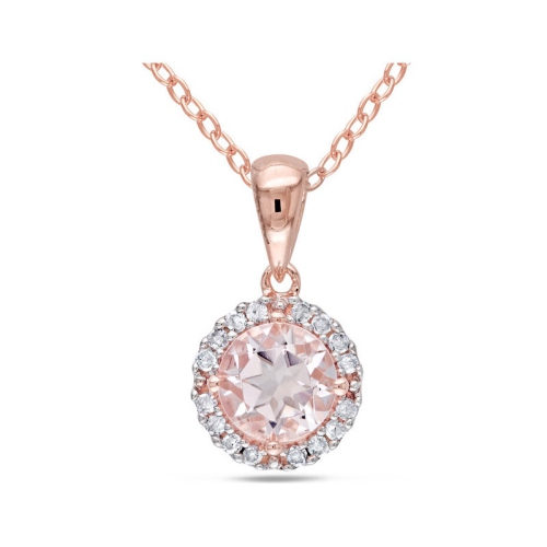 Collier à pendentif halo avec morganite 4/5 carat (ct) et chaîne en argent sterling plaqué rose et en diamants 1/10 carat (ct)
