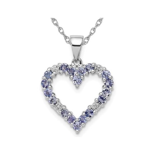 Des tanzanites violettes saisissantes brillent en forme de coeur grâce à ce pendentif en forme de coeur en argent sterling plaqué rhodium et à la chaîne qui comprend une chaîne 18 po.