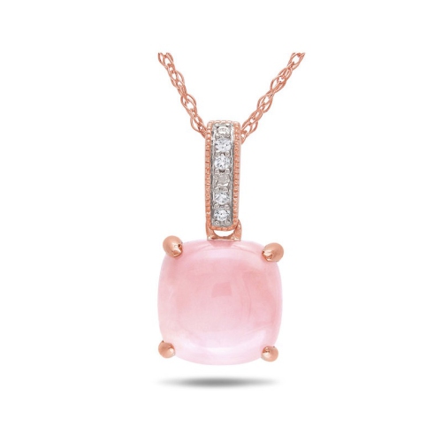 Ce magnifique collier est doté d'une opale rose en peluche et de diamants blancs ronds sertis dans de l'or rose 10 ct. Ce magnifique pendentif est suspendu à une chaîne torsadée sécurisée par un fermoir à anneau à ressort. Opal est la pierre de naissance d'octobre en vedette.