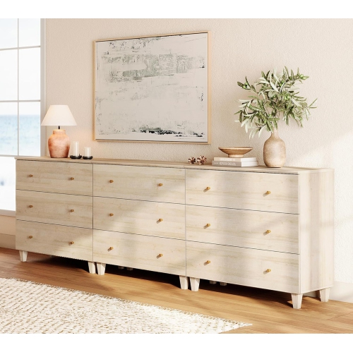 Commode WAMPAT pour chambre à coucher avec 9 tiroirs, commode de rangement large de 106,2 po, range-tout moderne pour coffres, commode 3-en-1 pour le salon, chambre de bébé, chêne clair